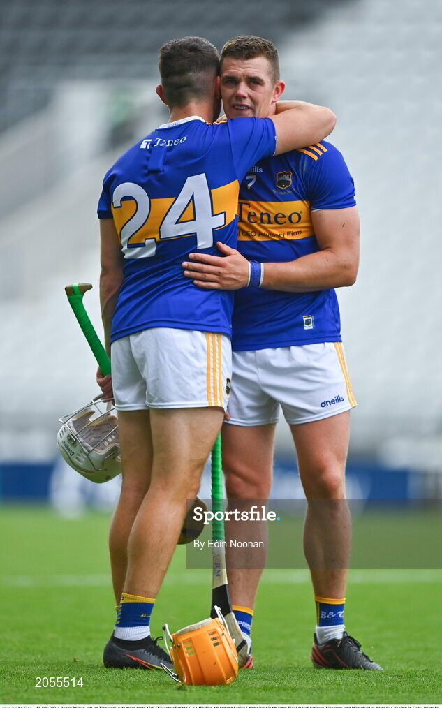 31 July 2021; Ronan Maher, left, of Tipperary with team-mate Niall O'Meara after the GAA Hurling All-Ireland Senior Championship Quarter-Final match between Tipperary and Waterford at Pairc Ui Chaoimh in Cork. Photo by Eóin Noonan/Sportsfile