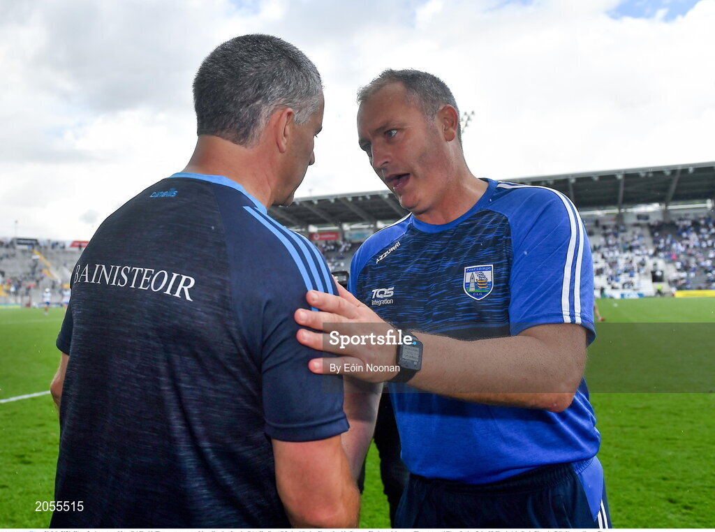 31 July 2021; Waterford manager Liam Cahill with Tipperary manager Liam Sheedy after the GAA Hurling All-Ireland Senior Championship Quarter-Final match between Tipperary and Waterford at Pairc Ui Chaoimh in Cork. Photo by Eóin Noonan/Sportsfile