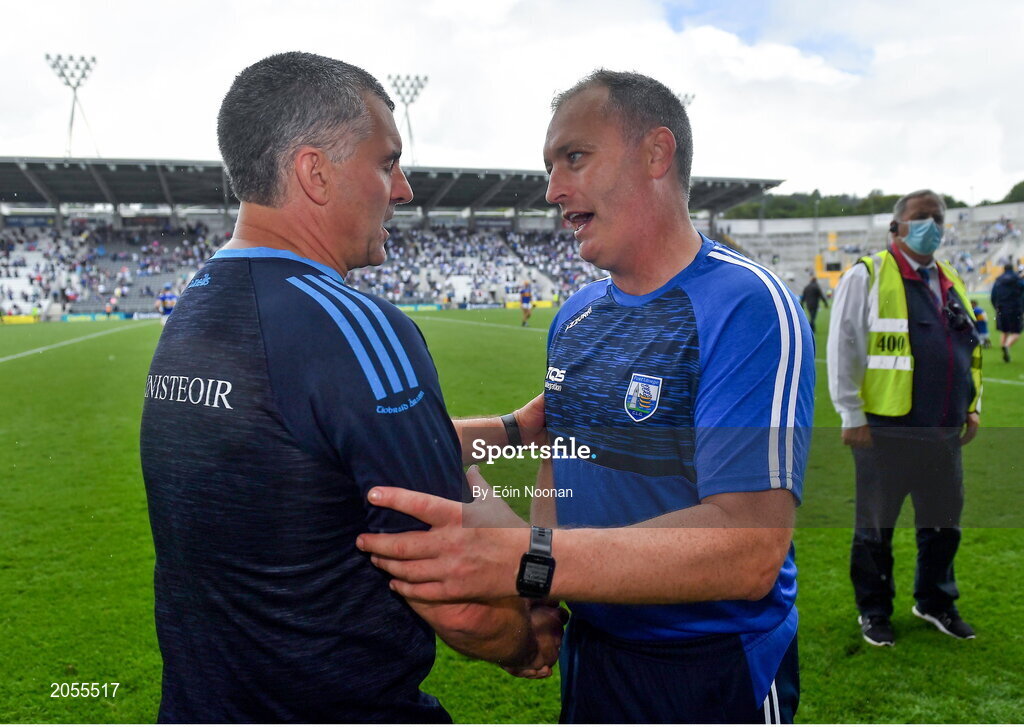 31 July 2021; Waterford manager Liam Cahill with Tipperary manager Liam Sheedy after the GAA Hurling All-Ireland Senior Championship Quarter-Final match between Tipperary and Waterford at Pairc Ui Chaoimh in Cork. Photo by Eóin Noonan/Sportsfile