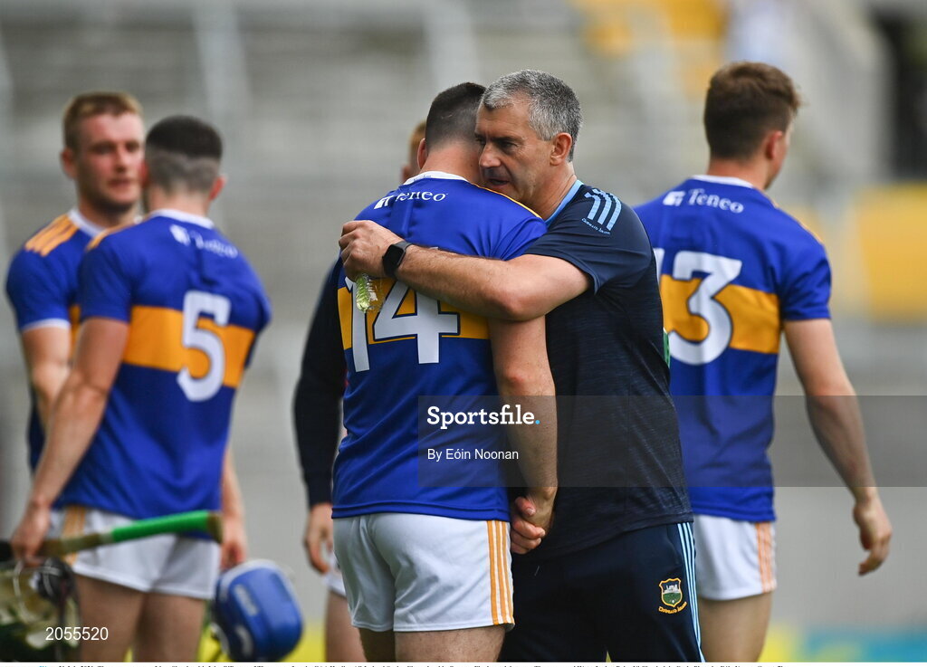 31 July 2021; Tipperary manager Liam Sheedy with John O'Dwyer of Tipperary after the GAA Hurling All-Ireland Senior Championship Quarter-Final match between Tipperary and Waterford at Pairc Ui Chaoimh in Cork. Photo by Eóin Noonan/Sportsfile