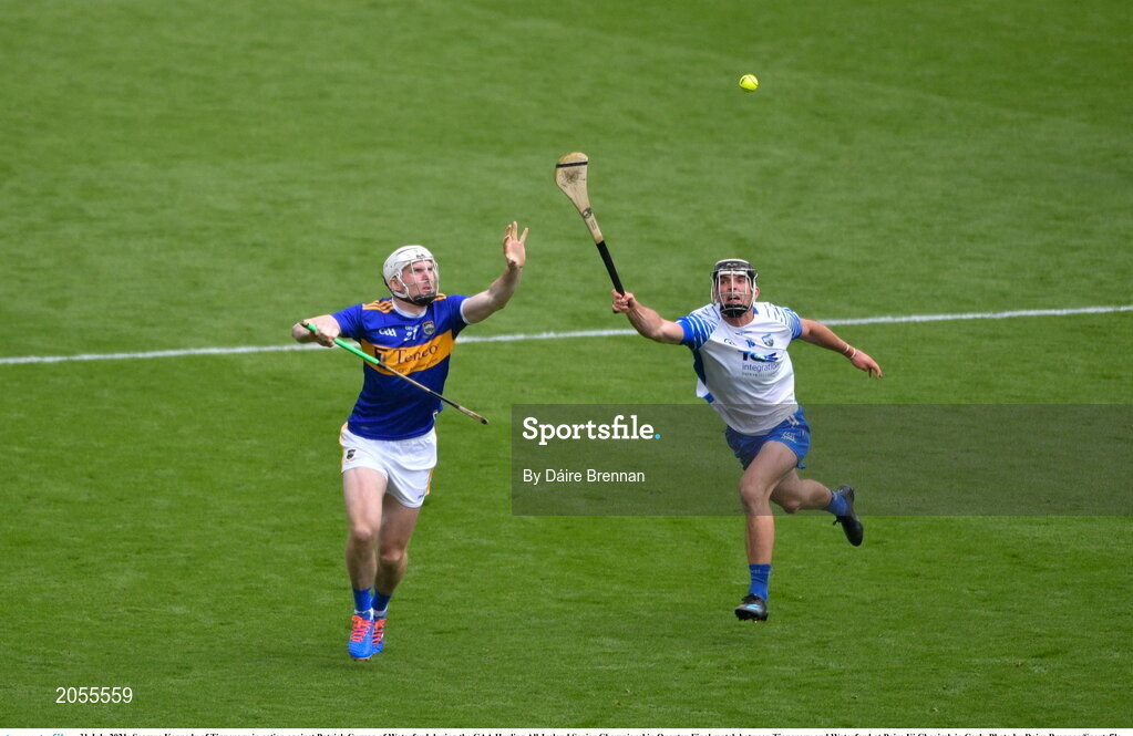 31 July 2021; Seamus Kennedy of Tipperary in action against Patrick Curran of Waterford during the GAA Hurling All-Ireland Senior Championship Quarter-Final match between Tipperary and Waterford at Pairc Ui Chaoimh in Cork. Photo by Daire Brennan/Sportsfile