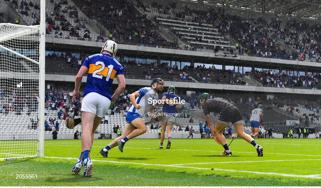 31 July 2021; Colin Dunford of Waterford celebrates after team-mate Neil Montgomery scores his side's third goal during the GAA Hurling All-Ireland Senior Championship Quarter-Final match between Tipperary and Waterford at Pairc Ui Chaoimh in Cork. Photo by Eóin Noonan/Sportsfile