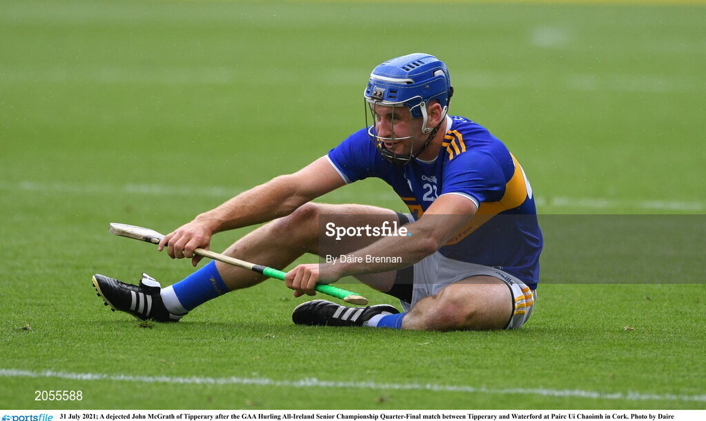 31 July 2021; A dejected John McGrath of Tipperary after the GAA Hurling All-Ireland Senior Championship Quarter-Final match between Tipperary and Waterford at Pairc Ui Chaoimh in Cork. Photo by Daire Brennan/Sportsfile