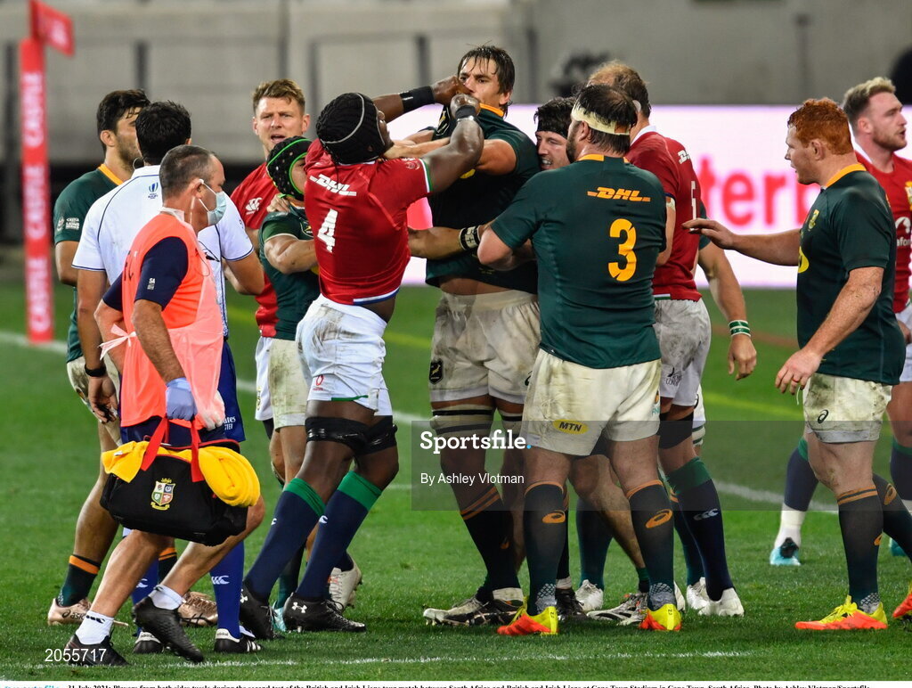 31 July 2021; Players from both sides tussle during the second test of the British and Irish Lions tour match between South Africa and British and Irish Lions at Cape Town Stadium in Cape Town, South Africa. Photo by Ashley Vlotman/Sportsfile