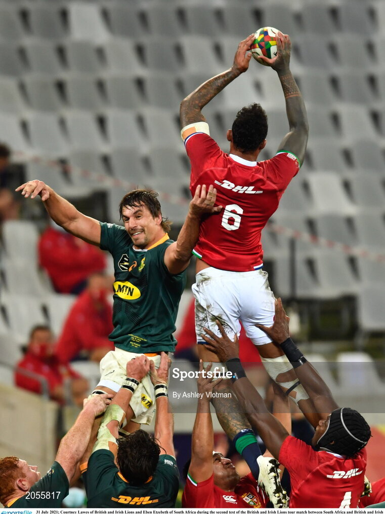 31 July 2021; Courtney Lawes of British and Irish Lions and Eben Etzebeth of South Africa during the second test of the British and Irish Lions tour match between South Africa and British and Irish Lions at Cape Town Stadium in Cape Town, South Africa. Photo by Ashley Vlotman/Sportsfile