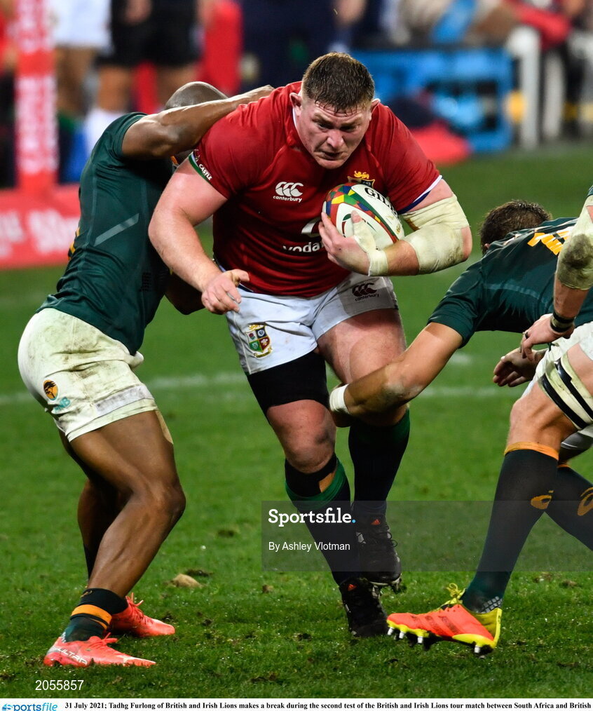 31 July 2021; Tadhg Furlong of British and Irish Lions makes a break during the second test of the British and Irish Lions tour match between South Africa and British and Irish Lions at Cape Town Stadium in Cape Town, South Africa. Photo by Ashley Vlotman/Sportsfile