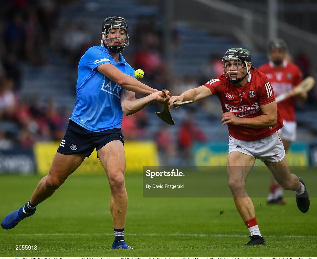 31 July 2021; Donal Burke of Dublin in action against Mark Coleman of Cork during the GAA Hurling All-Ireland Senior Championship Quarter-Final match between Dublin and Cork at Semple Stadium in Thurles, Tipperary. Photo by David Fitzgerald/Sportsfile
