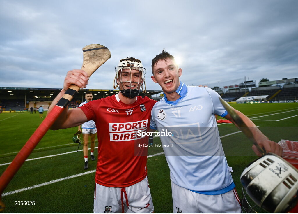 31 July 2021; Seán O'Leary Hayes of Cork, left, and team-mate Ger Millerick celebrate following the GAA Hurling All-Ireland Senior Championship Quarter-Final match between Dublin and Cork at Semple Stadium in Thurles, Tipperary. Photo by David Fitzgerald/Sportsfile