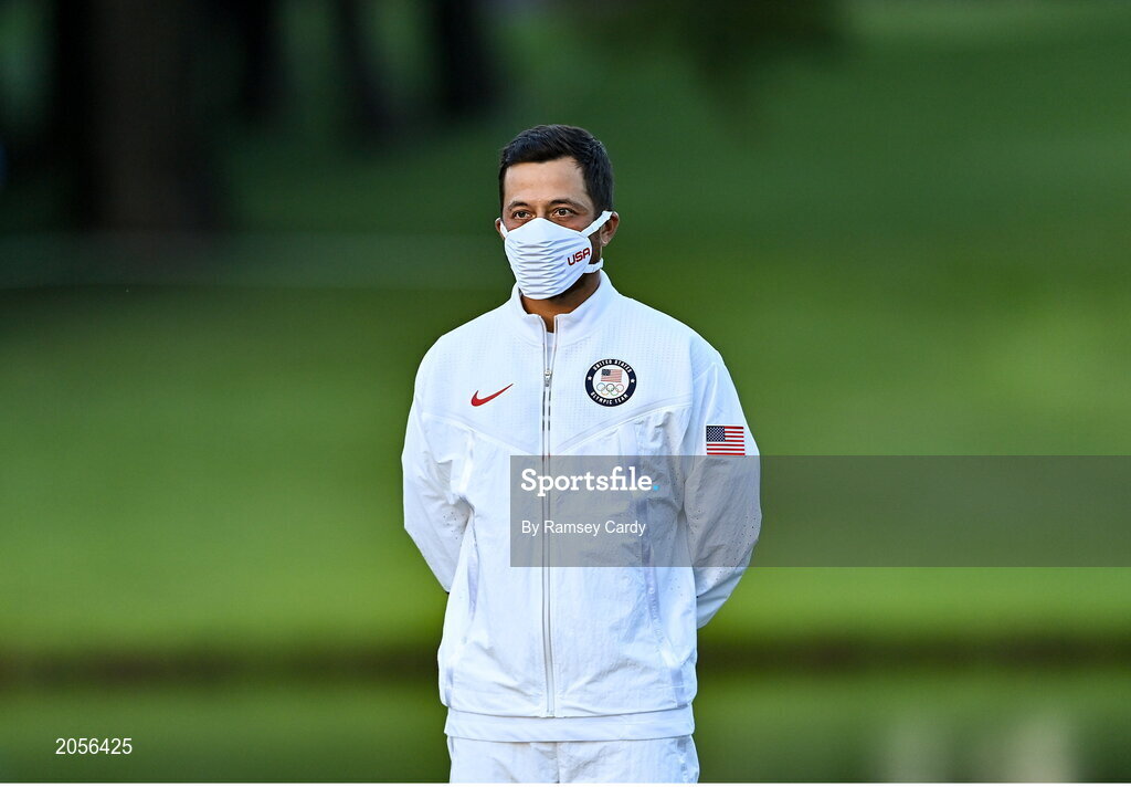 1 August 2021; Gold medalist Xander Schauffele of USA after the men's individual stroke play at the Kasumigaseki Country Club during the 2020 Tokyo Summer Olympic Games in Kawagoe, Saitama, Japan. Photo by Ramsey Cardy/Sportsfile