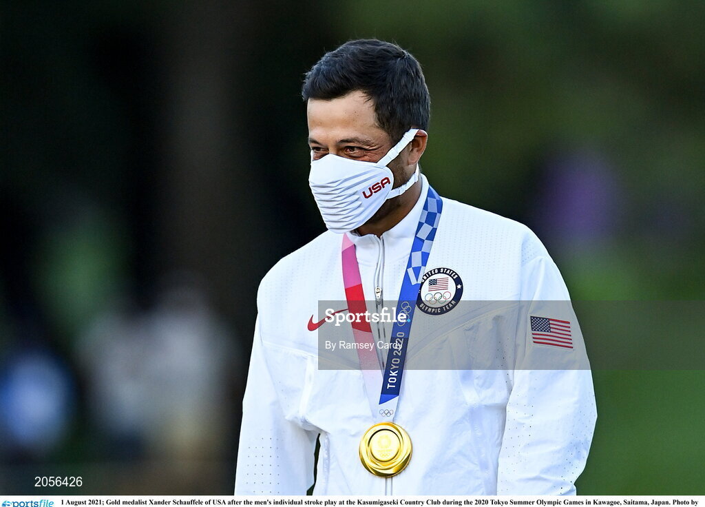 1 August 2021; Gold medalist Xander Schauffele of USA after the men's individual stroke play at the Kasumigaseki Country Club during the 2020 Tokyo Summer Olympic Games in Kawagoe, Saitama, Japan. Photo by Ramsey Cardy/Sportsfile