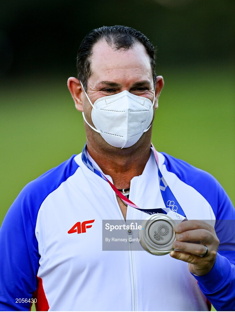 1 August 2021; Rory Sabbatini of Slovakia with his silver medal after the men's individual stroke play at the Kasumigaseki Country Club during the 2020 Tokyo Summer Olympic Games in Kawagoe, Saitama, Japan. Photo by Ramsey Cardy/Sportsfile
