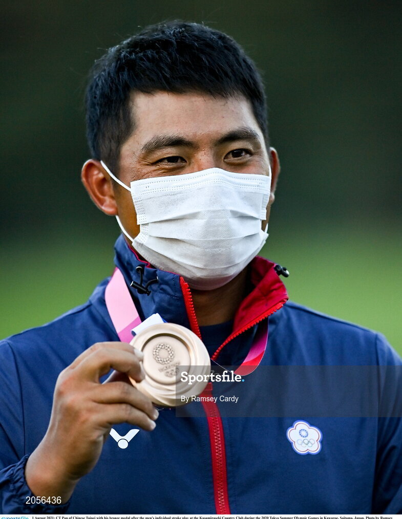 1 August 2021; CT Pan of Chinese Taipei with his bronze medal after the men's individual stroke play at the Kasumigaseki Country Club during the 2020 Tokyo Summer Olympic Games in Kawagoe, Saitama, Japan. Photo by Ramsey Cardy/Sportsfile
