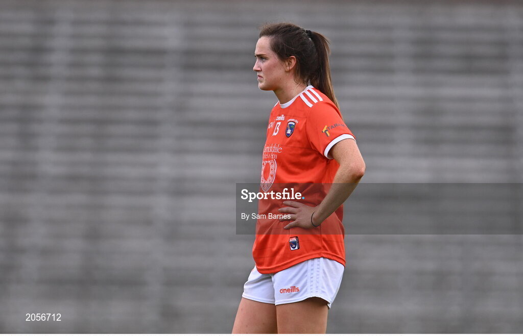1 August 2021; Aimee Mackin of Armagh dejected after her side's defeat in the TG4 Ladies Football All-Ireland Championship Quarter-Final match between Armagh and Meath at St Tiernach's Park in Clones, Monaghan. Photo by Sam Barnes/Sportsfile