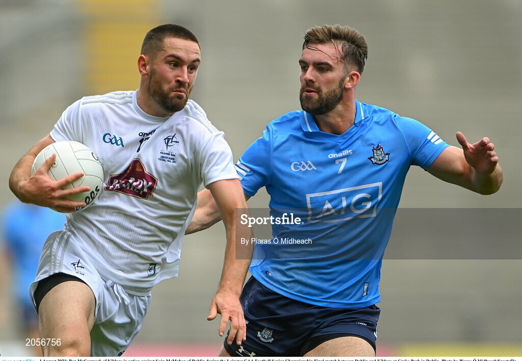 1 August 2021; Ben McCormack of Kildare in action against Seán McMahon of Dublin during the Leinster GAA Football Senior Championship Final match between Dublin and Kildare at Croke Park in Dublin. Photo by Piaras Ó Mídheach/Sportsfile