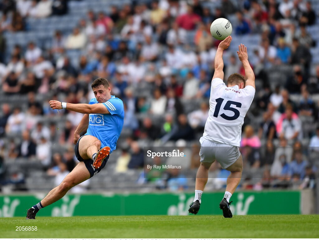 1 August 2021; Brian Howard of Dublin in action against Jimmy Hyland of Kildare during the Leinster GAA Football Senior Championship Final match between Dublin and Kildare at Croke Park in Dublin. Photo by Ray McManus/Sportsfile