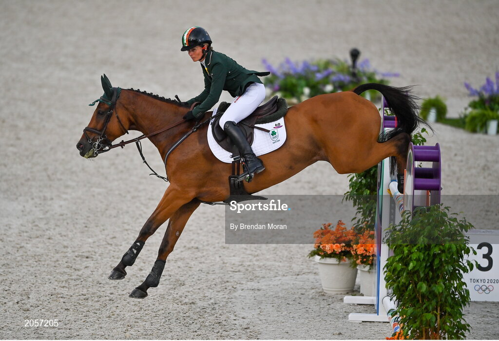 2 August 2021; Sarah Ennis of Ireland riding Horseware Woodcourt Garrison during the eventing jumping team final and individual qualifier at the Equestrian Park during the 2020 Tokyo Summer Olympic Games in Tokyo, Japan. Photo by Brendan Moran/Sportsfile