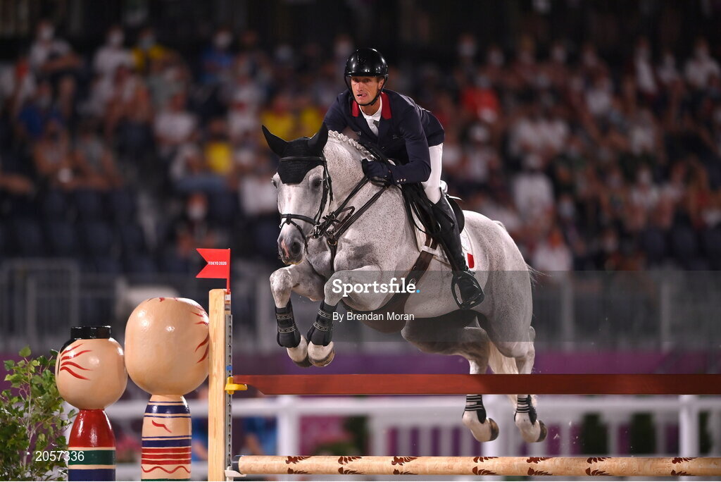 2 August 2021; Karim Florent Laghouag of France riding Triton Fontaine during the eventing jumping individual final at the Equestrian Park during the 2020 Tokyo Summer Olympic Games in Tokyo, Japan. Photo by Brendan Moran/Sportsfile