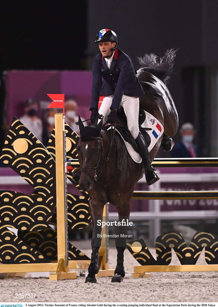 2 August 2021; Nicolas Touzaint of France riding Absolut Gold during the eventing jumping individual final at the Equestrian Park during the 2020 Tokyo Summer Olympic Games in Tokyo, Japan. Photo by Brendan Moran/Sportsfile