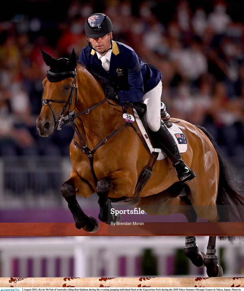 2 August 2021; Kevin McNab of Australia riding Don Quidam during the eventing jumping individual final at the Equestrian Park during the 2020 Tokyo Summer Olympic Games in Tokyo, Japan. Photo by Brendan Moran/Sportsfile