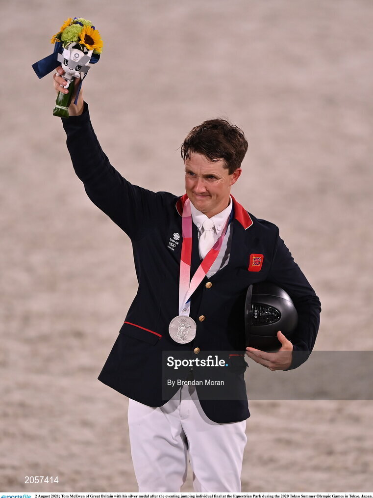 2 August 2021; Tom McEwen of Great Britain with his silver medal after the eventing jumping individual final at the Equestrian Park during the 2020 Tokyo Summer Olympic Games in Tokyo, Japan. Photo by Brendan Moran/Sportsfile