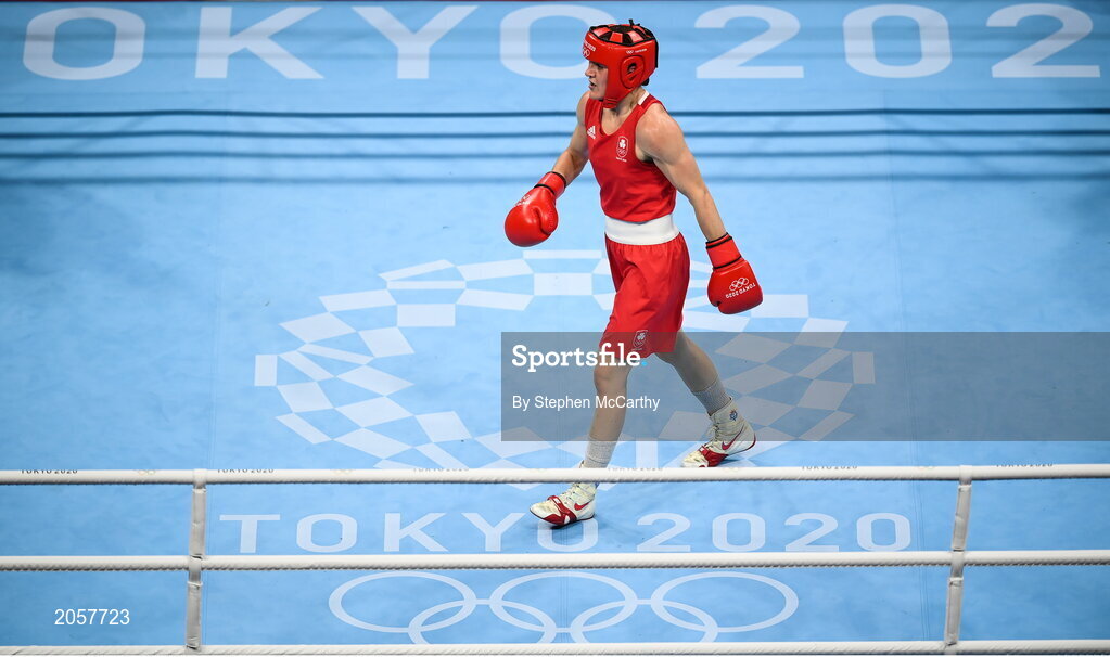 3 August 2021; Kellie Harrington of Ireland during her women's lightweight quarter-final bout against Imane Khelif of Algeria at the Kokugikan Arena during the 2020 Tokyo Summer Olympic Games in Tokyo, Japan. Photo by Stephen McCarthy/Sportsfile