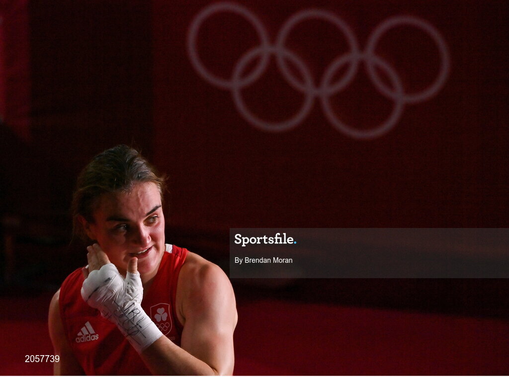 3 August 2021; Kellie Harrington of Ireland after her victory in the women's lightweight quarter-final bout against Imane Khelif of Algeria at the Kokugikan Arena during the 2020 Tokyo Summer Olympic Games in Tokyo, Japan. Photo by Brendan Moran/Sportsfile