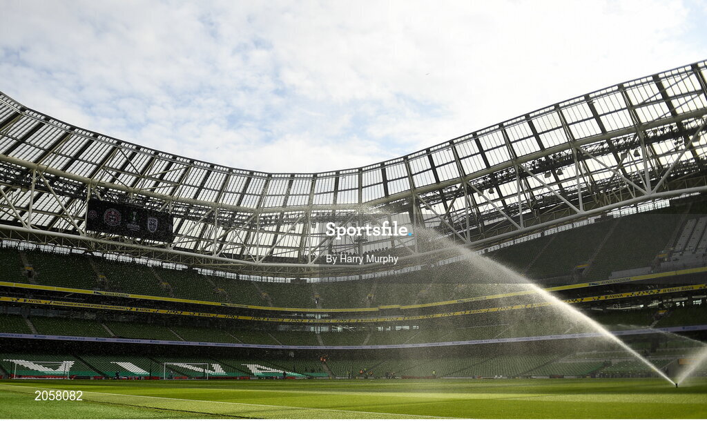 3 August 2021; A general view inside the stadium before the UEFA Europa Conference League third qualifying round first leg match between Bohemians and PAOK at Aviva Stadium in Dublin. Photo by Harry Murphy/Sportsfile