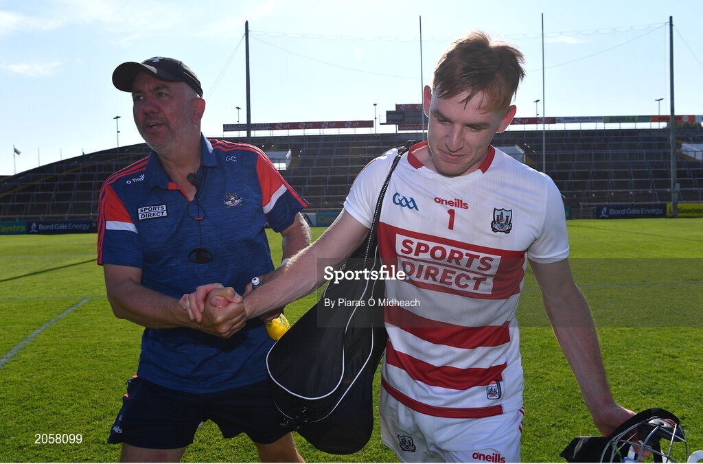 23 July 2021; Cork goalkeeper Patrick Collins with Cork selector Ger Cunningham after the GAA Hurling All-Ireland Senior Championship Round 2 match between Clare and Cork at LIT Gaelic Grounds in Limerick. Photo by Piaras Ó Mídheach/Sportsfile