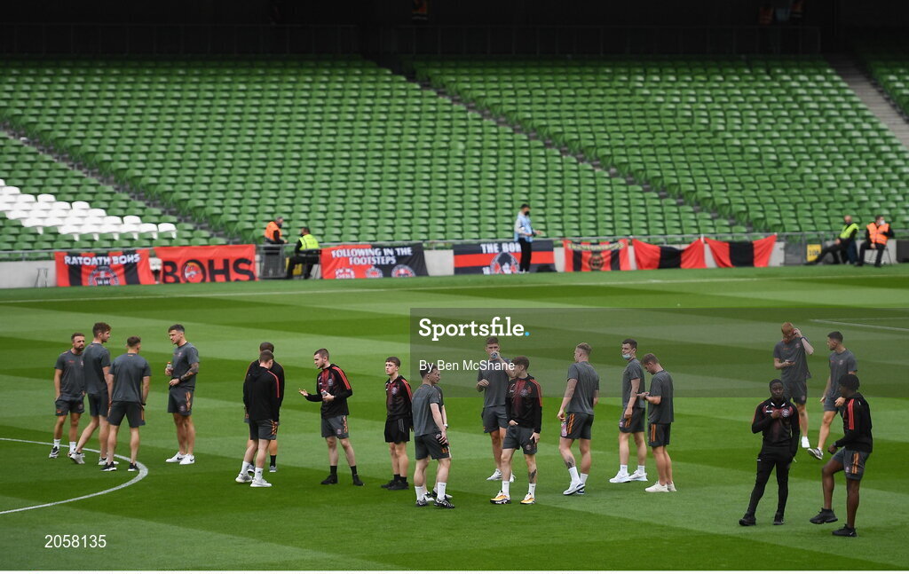3 August 2021; Bohemians players inspect the pitch before the UEFA Europa Conference League third qualifying round first leg match between Bohemians and PAOK at Aviva Stadium in Dublin. Photo by Ben McShane/Sportsfile