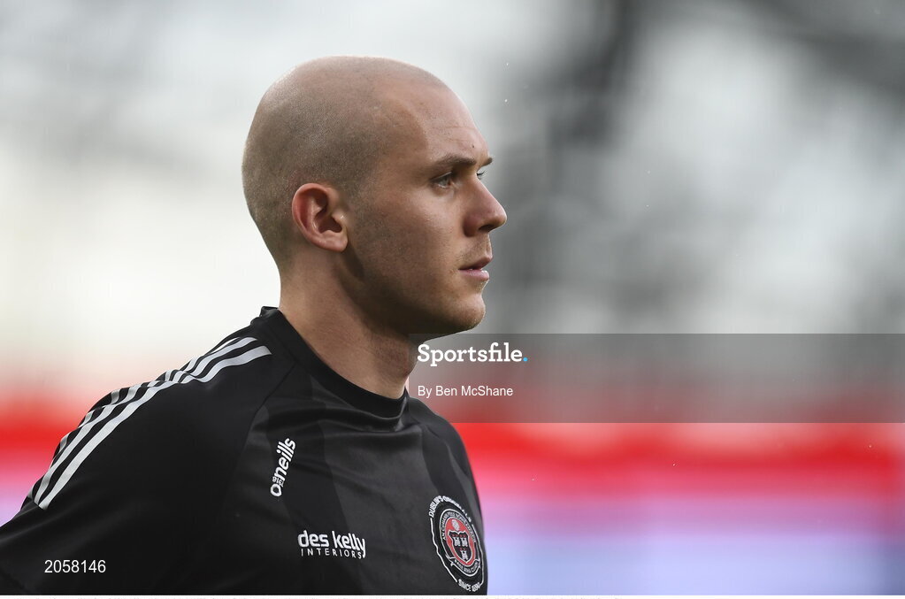 3 August 2021; Georgie Kelly of Bohemians before the UEFA Europa Conference League third qualifying round first leg match between Bohemians and PAOK at Aviva Stadium in Dublin. Photo by Ben McShane/Sportsfile