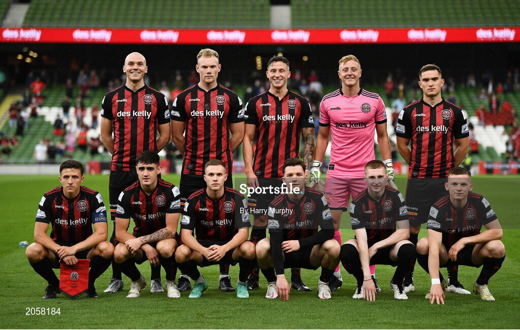 3 August 2021; The Bohemians team before the UEFA Europa Conference League third qualifying round first leg match between Bohemians and PAOK at Aviva Stadium in Dublin. Photo by Harry Murphy/Sportsfile