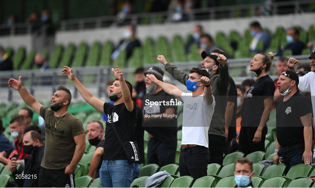 3 August 2021; PAOK fans during the UEFA Europa Conference League third qualifying round first leg match between Bohemians and PAOK at Aviva Stadium in Dublin. Photo by Harry Murphy/Sportsfile