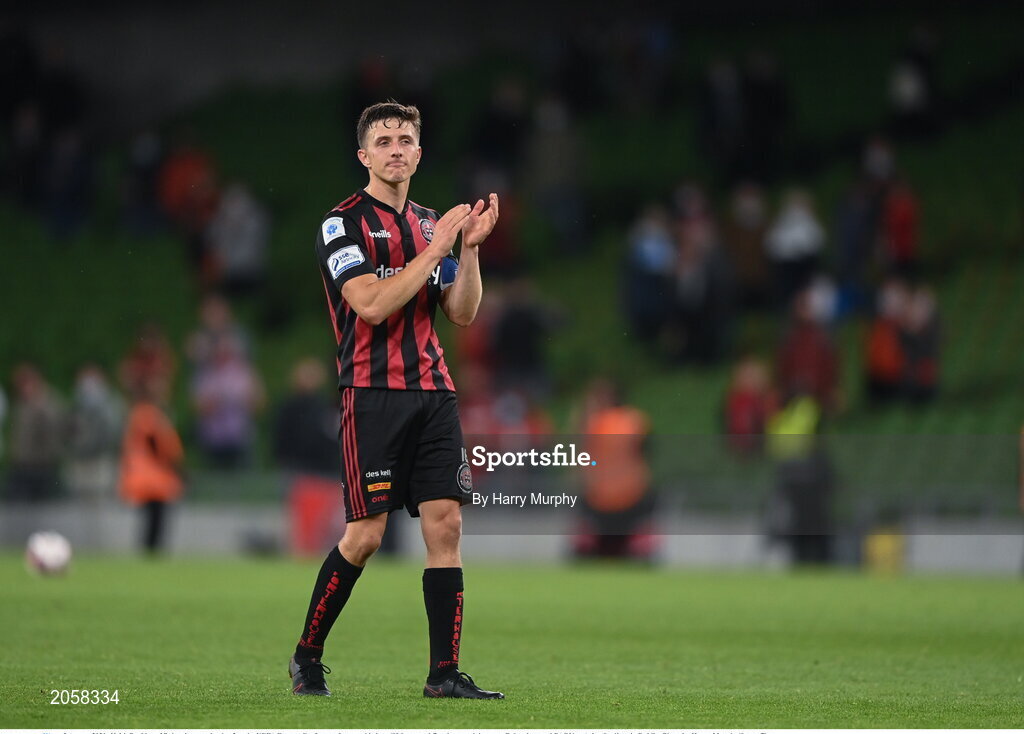 3 August 2021; Keith Buckley of Bohemians applauds after the UEFA Europa Conference League third qualifying round first leg match between Bohemians and PAOK at Aviva Stadium in Dublin. Photo by Harry Murphy/Sportsfile