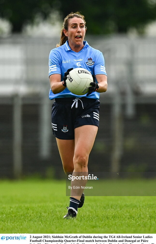 2 August 2021; Siobhán McGrath of Dublin during the TG4 All-Ireland Senior Ladies Football Championship Quarter-Final match between Dublin and Donegal at Páirc Seán Mac Diarmada in Carrick-On-Shannon, Leitrim. Photo by Eóin Noonan/Sportsfile