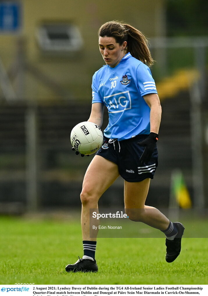 2 August 2021; Lyndsey Davey of Dublin during the TG4 All-Ireland Senior Ladies Football Championship Quarter-Final match between Dublin and Donegal at Páirc Seán Mac Diarmada in Carrick-On-Shannon, Leitrim. Photo by Eóin Noonan/Sportsfile