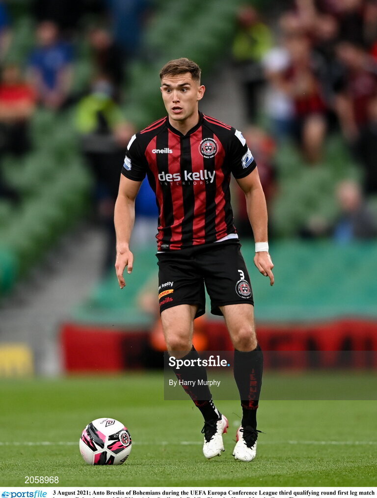 3 August 2021; Anto Breslin of Bohemians during the UEFA Europa Conference League third qualifying round first leg match between Bohemians and PAOK at Aviva Stadium in Dublin. Photo by Harry Murphy/Sportsfile