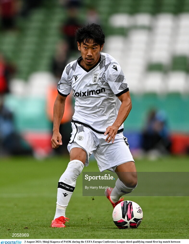 3 August 2021; Shinji Kagawa of PAOK during the UEFA Europa Conference League third qualifying round first leg match between Bohemians and PAOK at Aviva Stadium in Dublin. Photo by Harry Murphy/Sportsfile