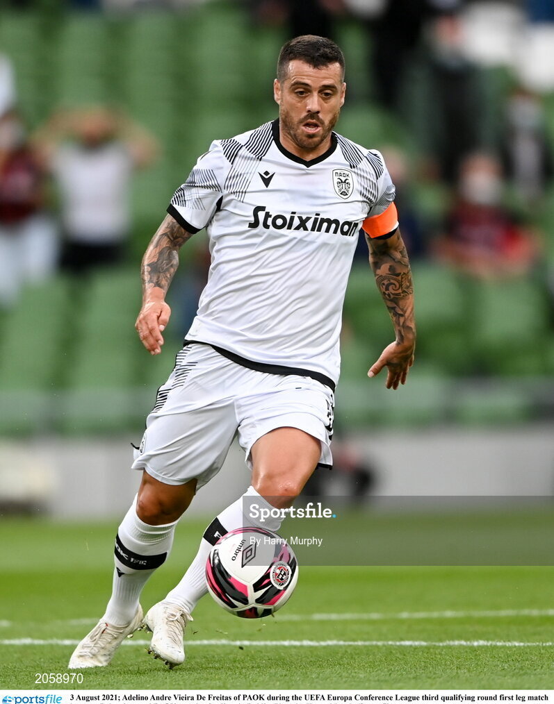 3 August 2021; Adelino Andre Vieira De Freitas of PAOK during the UEFA Europa Conference League third qualifying round first leg match between Bohemians and PAOK at Aviva Stadium in Dublin. Photo by Harry Murphy/Sportsfile