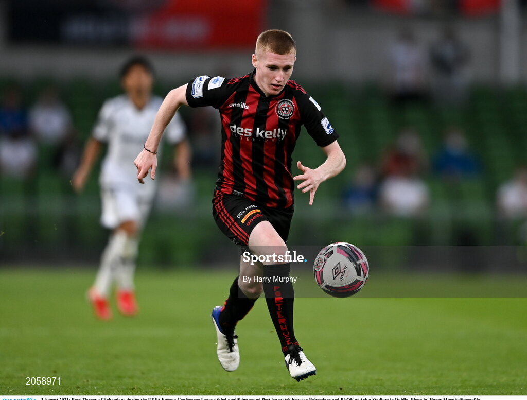 3 August 2021; Ross Tierney of Bohemians during the UEFA Europa Conference League third qualifying round first leg match between Bohemians and PAOK at Aviva Stadium in Dublin. Photo by Harry Murphy/Sportsfile