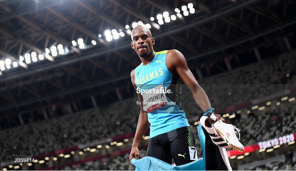 5 August 2021; Steven Gardiner of Bahamas reacts after winning the gold medal in the men's 400 metres final at the Olympic Stadium on day 13 during the 2020 Tokyo Summer Olympic Games in Tokyo, Japan. Photo by Stephen McCarthy/Sportsfile