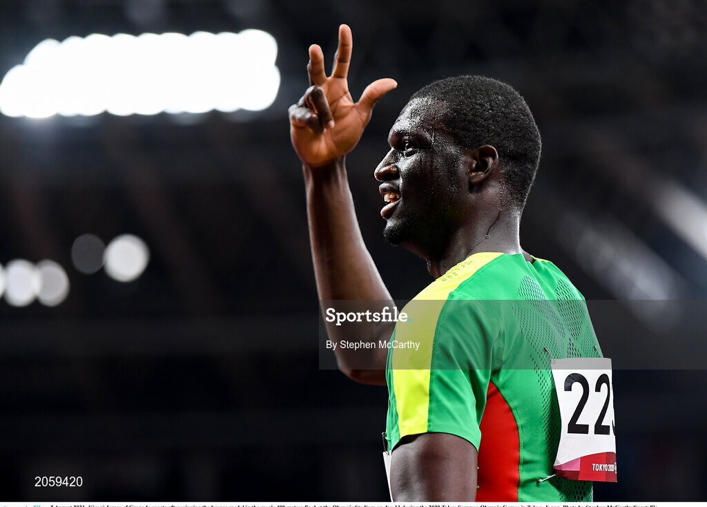 5 August 2021; Kirani James of Grenada reacts after winning the bronze medal in the men's 400 metres final at the Olympic Stadium on day 13 during the 2020 Tokyo Summer Olympic Games in Tokyo, Japan. Photo by Stephen McCarthy/Sportsfile