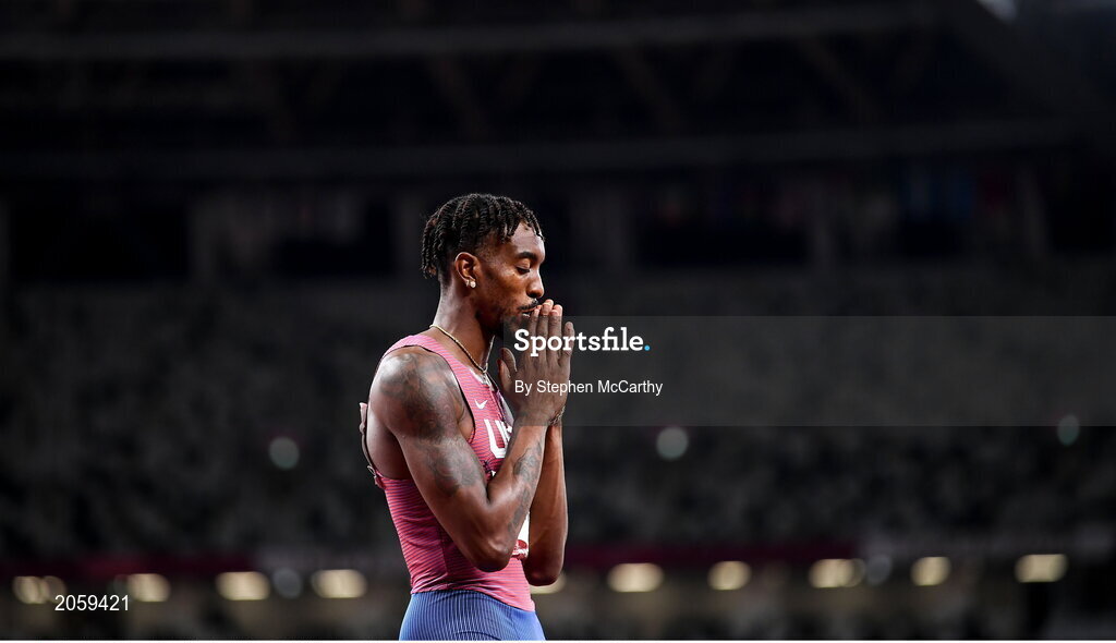 5 August 2021; Michael Cherry of United States before the men's 400 metres final at the Olympic Stadium on day 13 during the 2020 Tokyo Summer Olympic Games in Tokyo, Japan. Photo by Stephen McCarthy/Sportsfile
