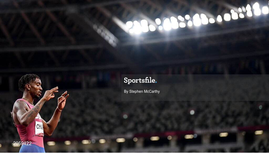 5 August 2021; Michael Cherry of United States before the men's 400 metres final at the Olympic Stadium on day 13 during the 2020 Tokyo Summer Olympic Games in Tokyo, Japan. Photo by Stephen McCarthy/Sportsfile