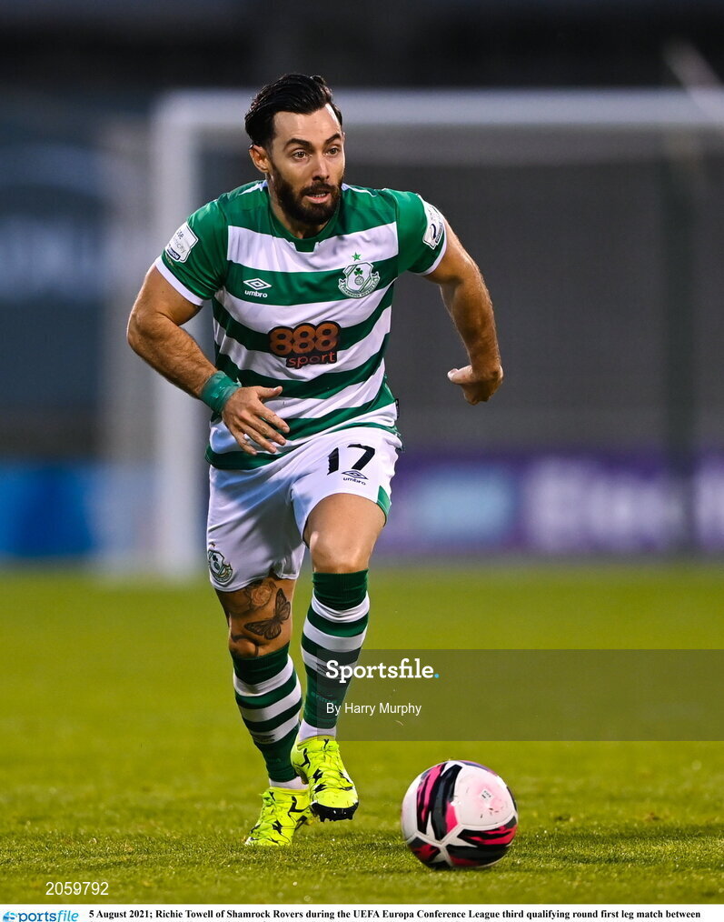 5 August 2021; Richie Towell of Shamrock Rovers during the UEFA Europa Conference League third qualifying round first leg match between Shamrock Rovers and Teuta at Tallaght Stadium in Dublin. Photo by Harry Murphy/Sportsfile