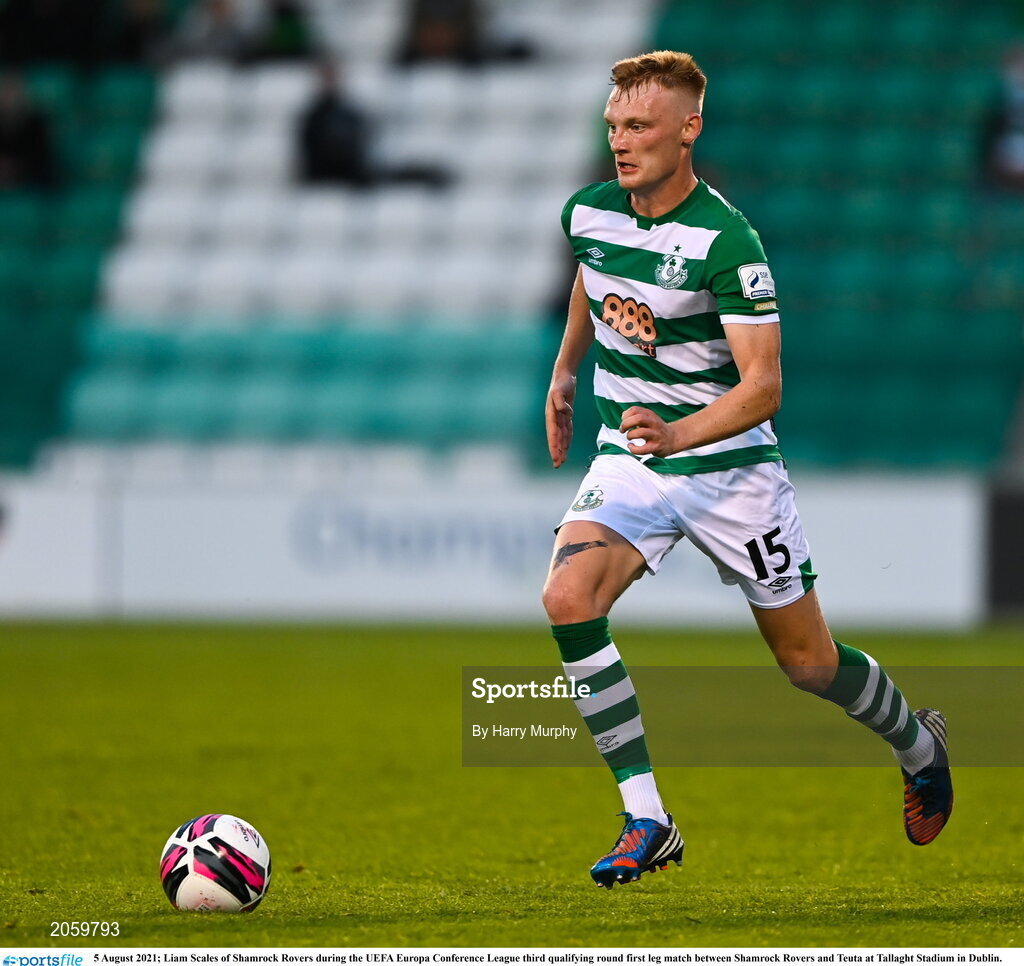 5 August 2021; Liam Scales of Shamrock Rovers during the UEFA Europa Conference League third qualifying round first leg match between Shamrock Rovers and Teuta at Tallaght Stadium in Dublin. Photo by Harry Murphy/Sportsfile