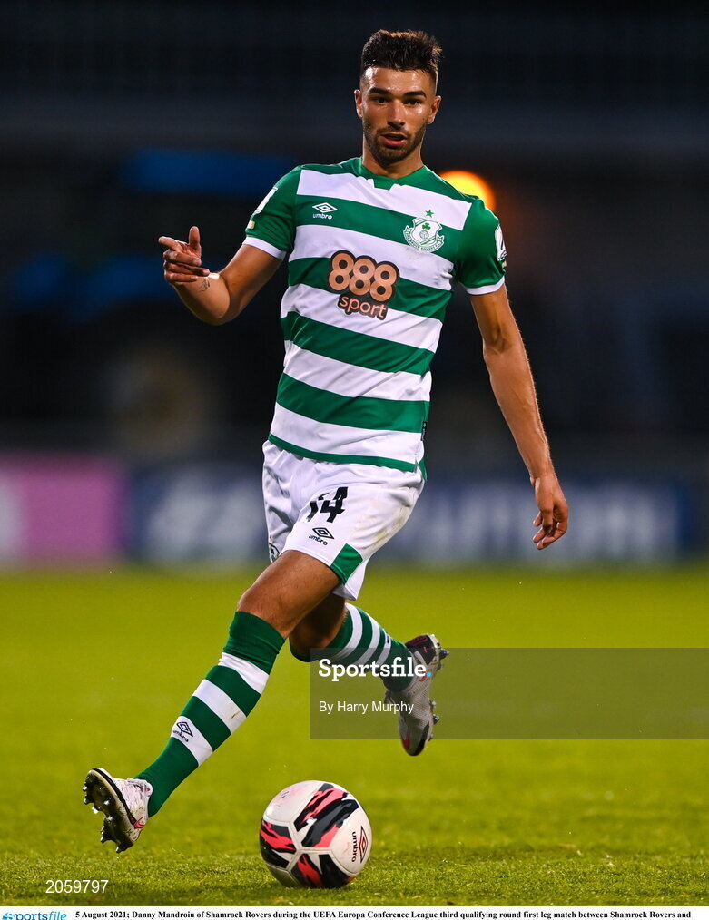 5 August 2021; Danny Mandroiu of Shamrock Rovers during the UEFA Europa Conference League third qualifying round first leg match between Shamrock Rovers and Teuta at Tallaght Stadium in Dublin. Photo by Harry Murphy/Sportsfile