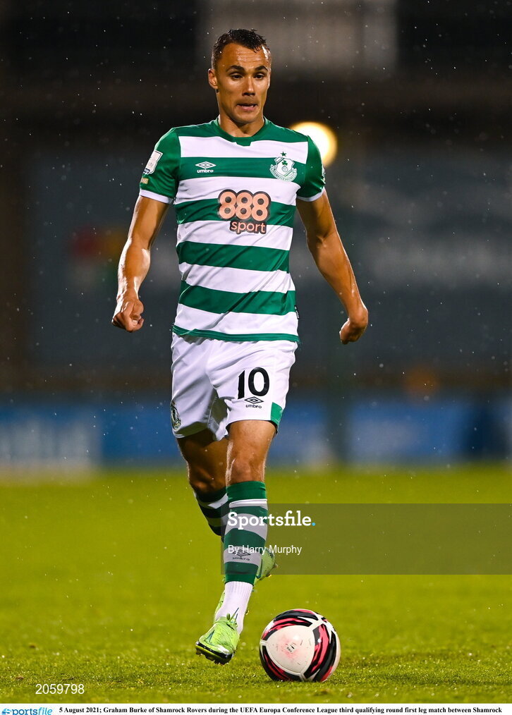 5 August 2021; Graham Burke of Shamrock Rovers during the UEFA Europa Conference League third qualifying round first leg match between Shamrock Rovers and Teuta at Tallaght Stadium in Dublin. Photo by Harry Murphy/Sportsfile