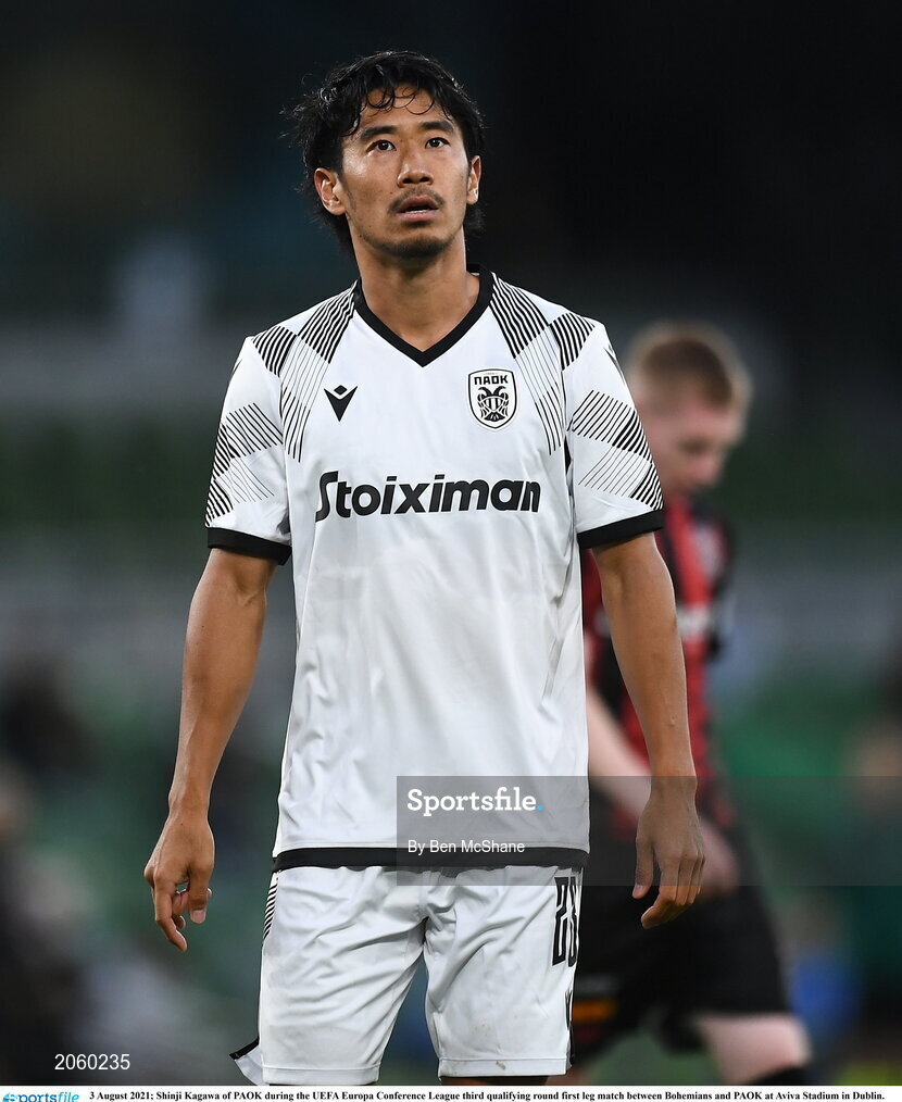 3 August 2021; Shinji Kagawa of PAOK during the UEFA Europa Conference League third qualifying round first leg match between Bohemians and PAOK at Aviva Stadium in Dublin. Photo by Ben McShane/Sportsfile