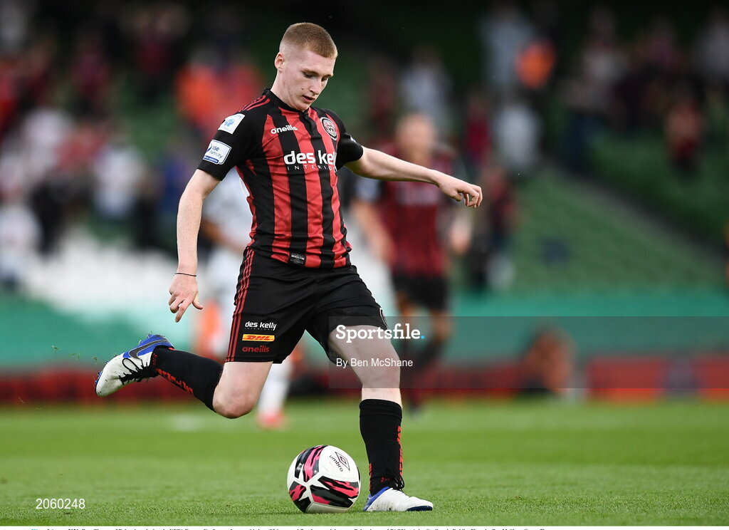 3 August 2021; Ross Tierney of Bohemians during the UEFA Europa Conference League third qualifying round first leg match between Bohemians and PAOK at Aviva Stadium in Dublin. Photo by Ben McShane/Sportsfile