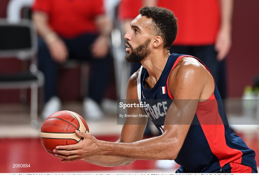 7 August 2021; Rudy Gobert of France during the men's gold medal match between the USA and France at the Saitama Super Arena during the 2020 Tokyo Summer Olympic Games in Tokyo, Japan. Photo by Brendan Moran/Sportsfile